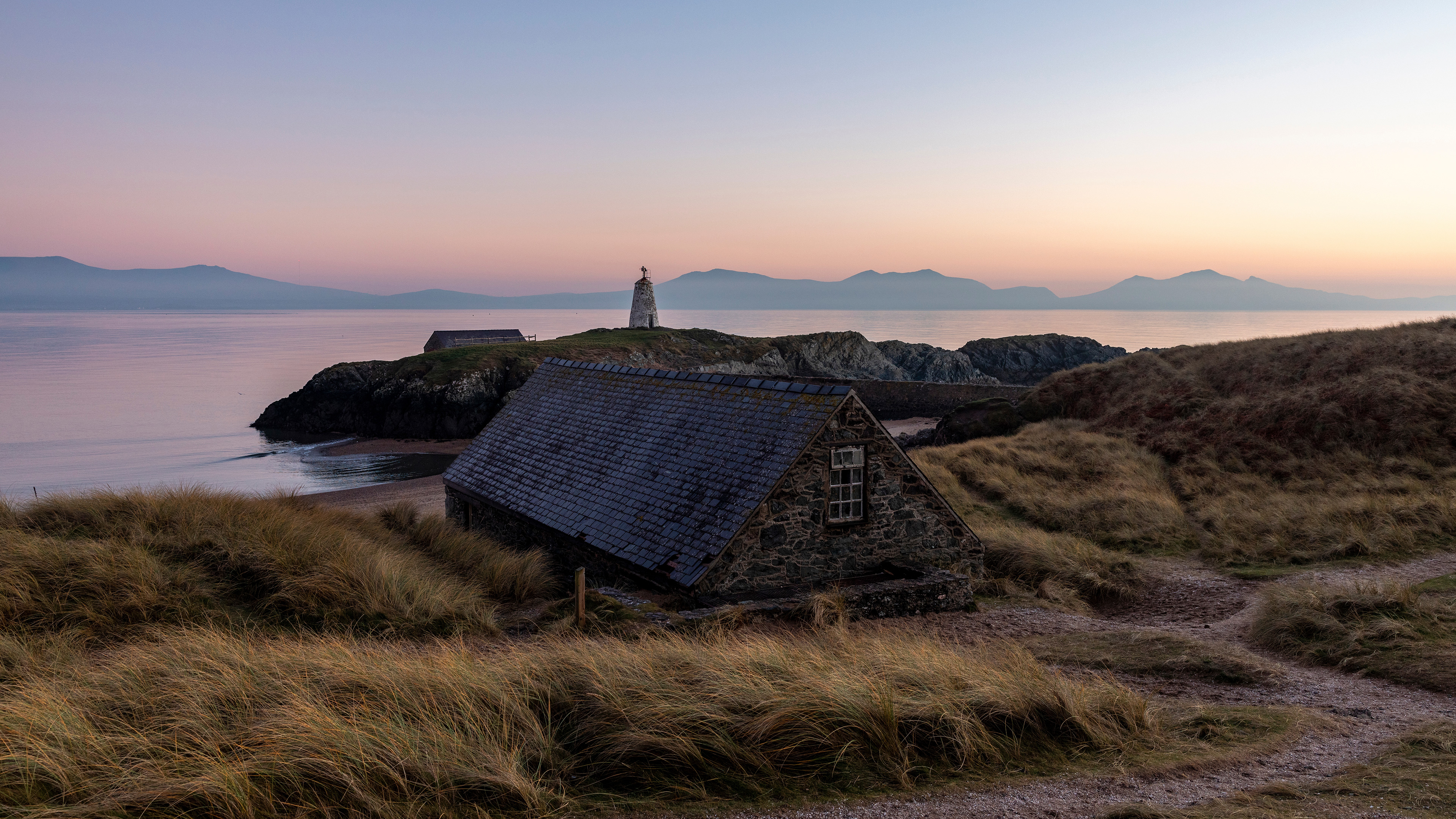 Cottage with Tŵr Mawr Lighthouse in the background, Ynys Llanddwyn, 威尔士 (© Westend61 on Offset/Shutterstock)